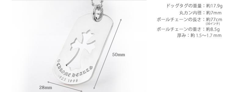 重さ:約17.9g(ドッグタグのみ) 丸カン内径:約7mm