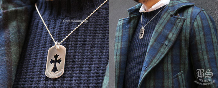 一見すると王道とも言えるデザインだが、カットアウトを採用することによって、独特のフォルム感が生み出されている。その遊び心旺盛なデザインは、シンプルな発想だからこそ嫌味がない。どんな服装にも溶け込むクロスドッグタグだからこそ、それを身につける者の個性が引き出されるのである。