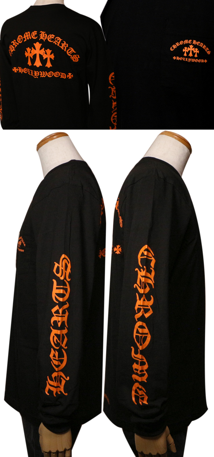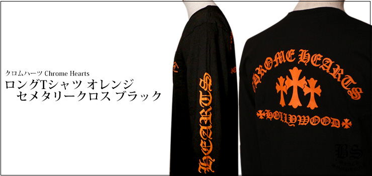 クロムハーツ ロングTシャツ オレンジ セメタリークロス ブラック