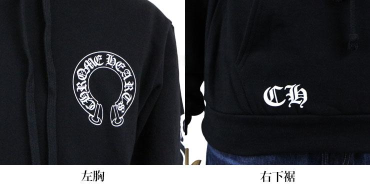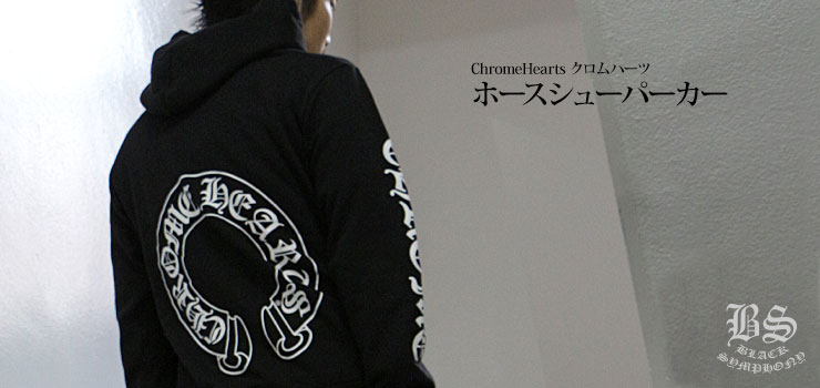 店頭でも必ずと言っていい程、掲げられているホースシューのロゴが前面と背面にプリントされた、これこそクロムハーツといえるパーカーです。