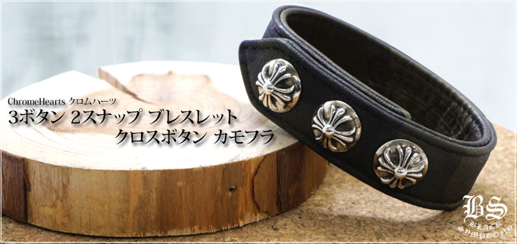 CHROME HEARTS(クロムハーツ)3ボタン 2スナップ ブレスレット クロスボタン カモフラ。 925シルバーの重厚感・レザー×シルバー(記載)で手元に存在感。
