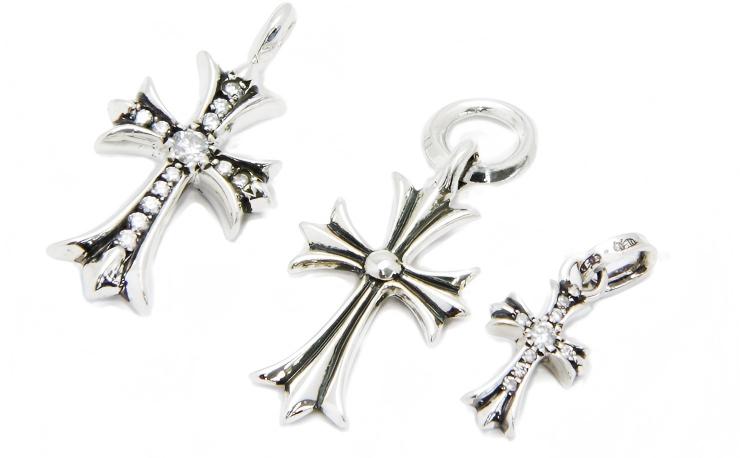 ボディをシルバーで象っているので、実質的に「CHクロスベビーファットチャームwith パヴェダイヤモンド」の上位に位置するチャームにあたり、シルバー製のクロムハーツネックレスチャームの中では最高位のアイテムにあたります。