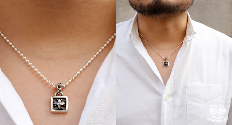 クロムハーツのCHクロスベビーファットチャーム等、小さめのネックレスチャームとの相性も良く、重ね付けをされる方も多くいらっしゃいます。同じモチーフ同士のため、相性も抜群ですので、是非ワンランク上のコーディネートを愉しみたい方にはおすすめです。