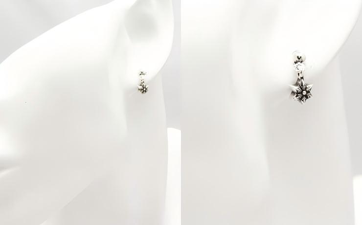 クロムハーツの代表的、人気モチーフの一つスターをあしらい、揺れ動く様を楽しめるように、ドロップタイプにしたピアス。