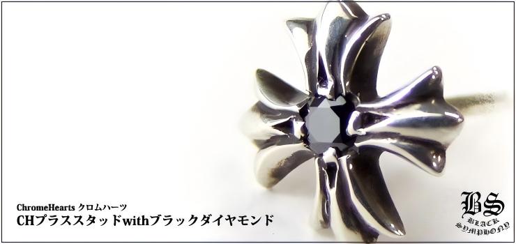 クロムハーツ CHプラススタッドピアスwithブラックダイヤモンド