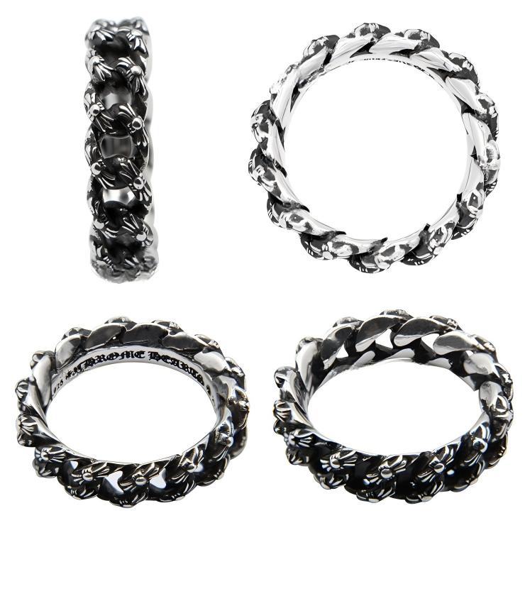 ブレスレットなどにも使われているエクストラファンシーチェーンをそのままリングにした、クロムハーツらしいハードなデザインが特徴的なリングです。