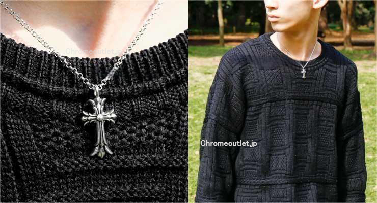 小さなクロムハーツのCHクロスが2つ重なったクロスに、細身のロールチェーンを通したセットアイテム。