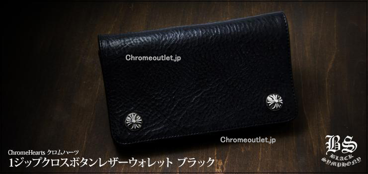 クロムハーツ 1ジップクロスボタンレザーウォレット ブラック