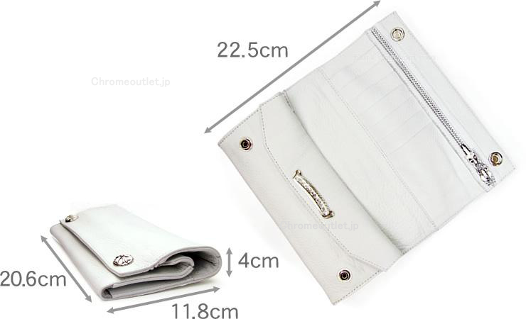 CHROME HEARTS(クロムハーツ)の「ロングウォレット クロスボタン ホワイトレザー(財布)」は、ウォレット(財布)です。素材:925シルバー/本革(レザー) / 重量:約298g。カード:7枚 / 小銭入れ:あり / 特徴:ラッピング。