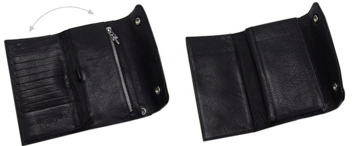 ウェーブウォレット クロスボタン ブラック ヘビーレザー