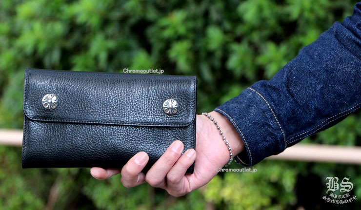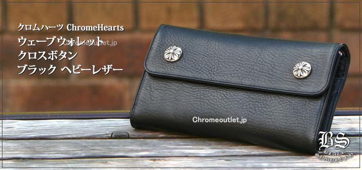 クロムハーツ ウェーブウォレット クロスボタン ブラック ヘビーレザー