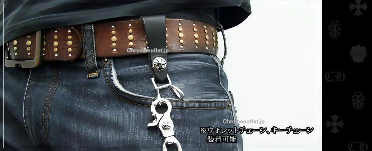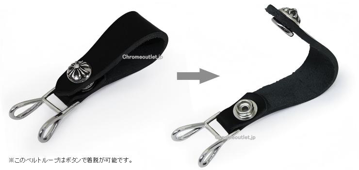 CHROME HEARTS(クロムハーツ)Wベルトループ クロスボタン ブラックレザー。925シルバー/本革(レザー)の質感とディテールで差がつきます。(ウォレットチェーン対応)