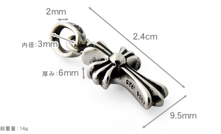 チャームの側面にはシルバーの証である925の刻印と、クロムハーツである証のCHのロゴが刻まれています。